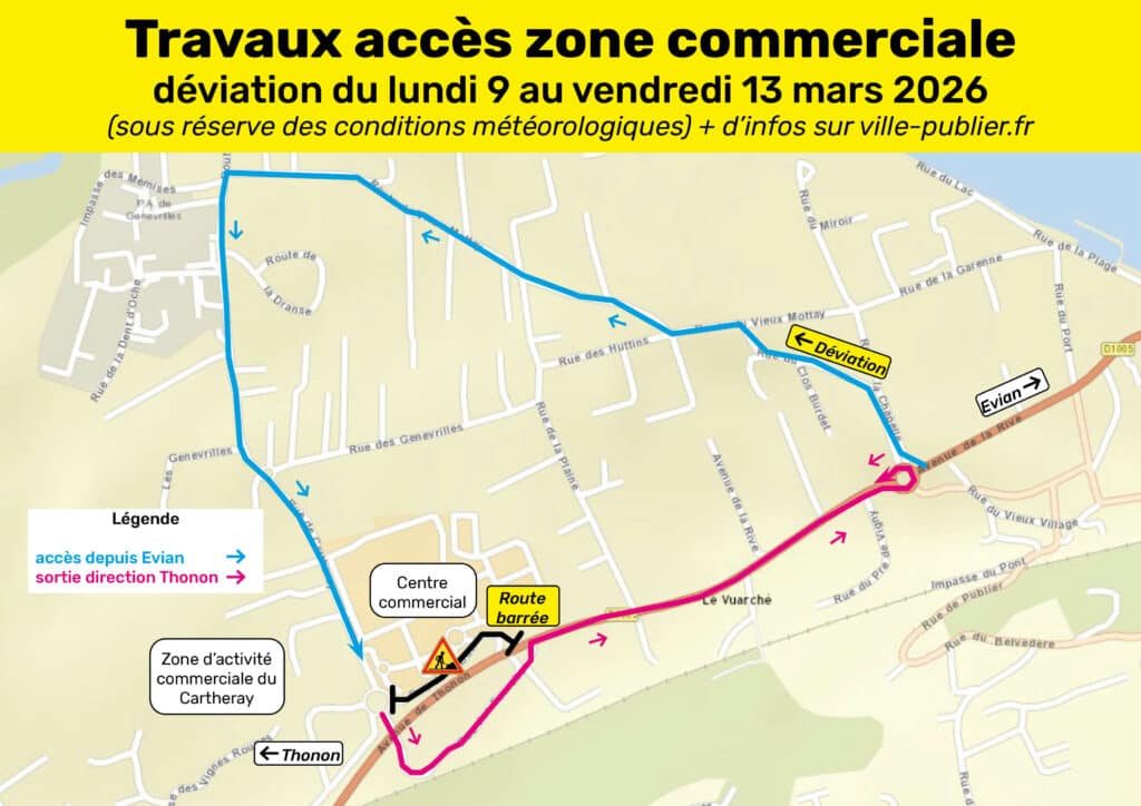 Principale porte d’entrée de la zone commerciale pour les clients venus de l’Est (Evian, Valais), la rue de La Botte sera en travaux du 9 au 13 mars (sous réserve des conditions météorologiques). Le chantier consiste en la reprise de 250 mètres d’enrobés aujourd’hui abîmés. Cette voie particulièrement passante est empruntée tant par les automobilistes que par les poids lourds qui livrent les nombreuses entreprises du secteur.