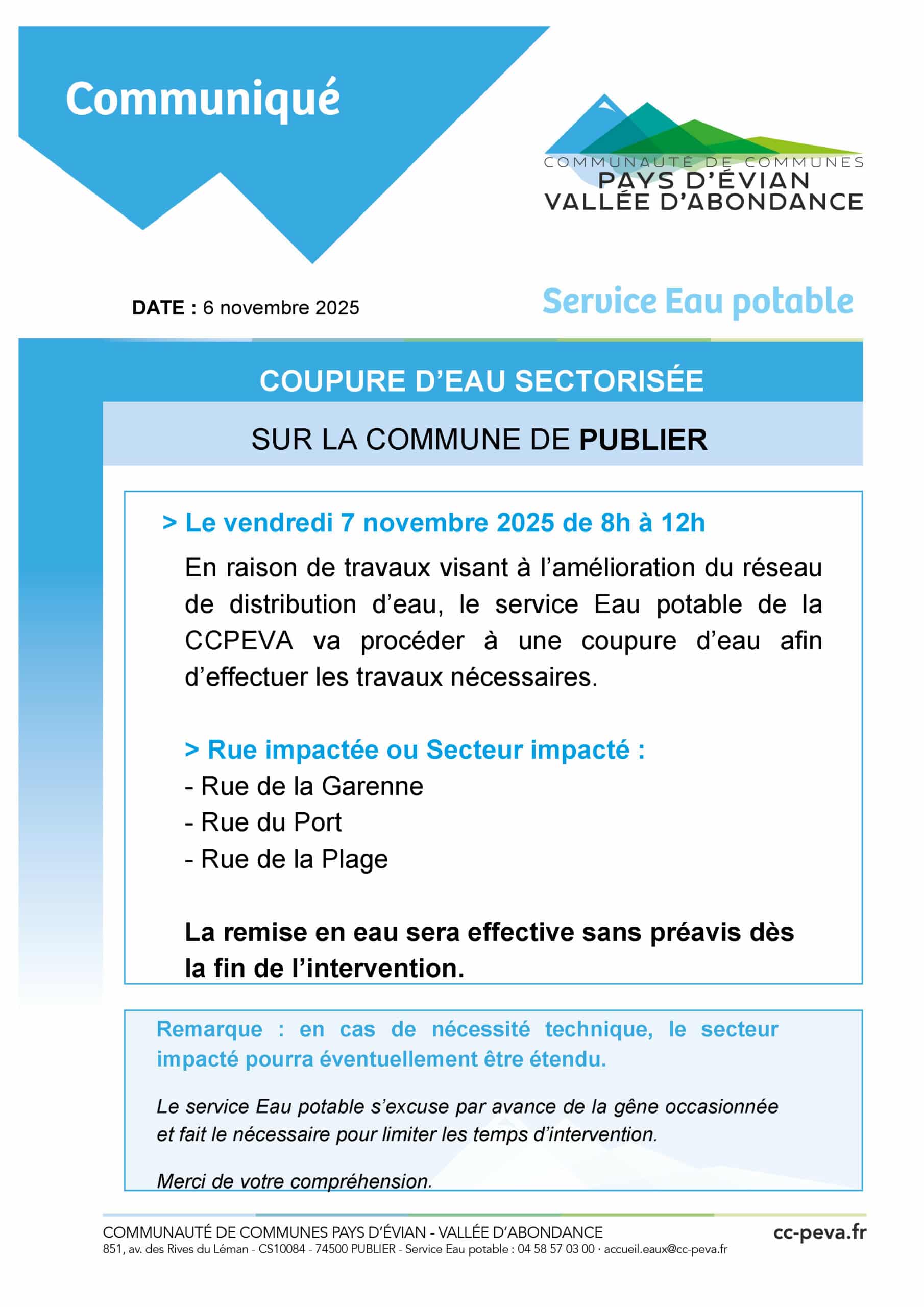 Coupure d’eau secteur du port le 7 novembre / Actualités / Par Service Communication Coupure d'eau Voir toutes les actualités
