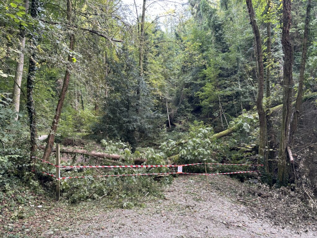 En raison d’une chute d’arbres en travers du sentier entre le chemin de la Planté et l’ancienne gare, qui longe le site de Novery, le passage est condamné le temps de l’intervention des équipes.