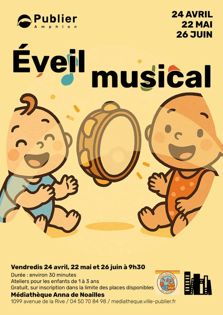 La médiathèque Anna de Noailles propose des ateliers d’éveil musical pour les enfants de 1 à 3 ans à 9h30 les vendredis :