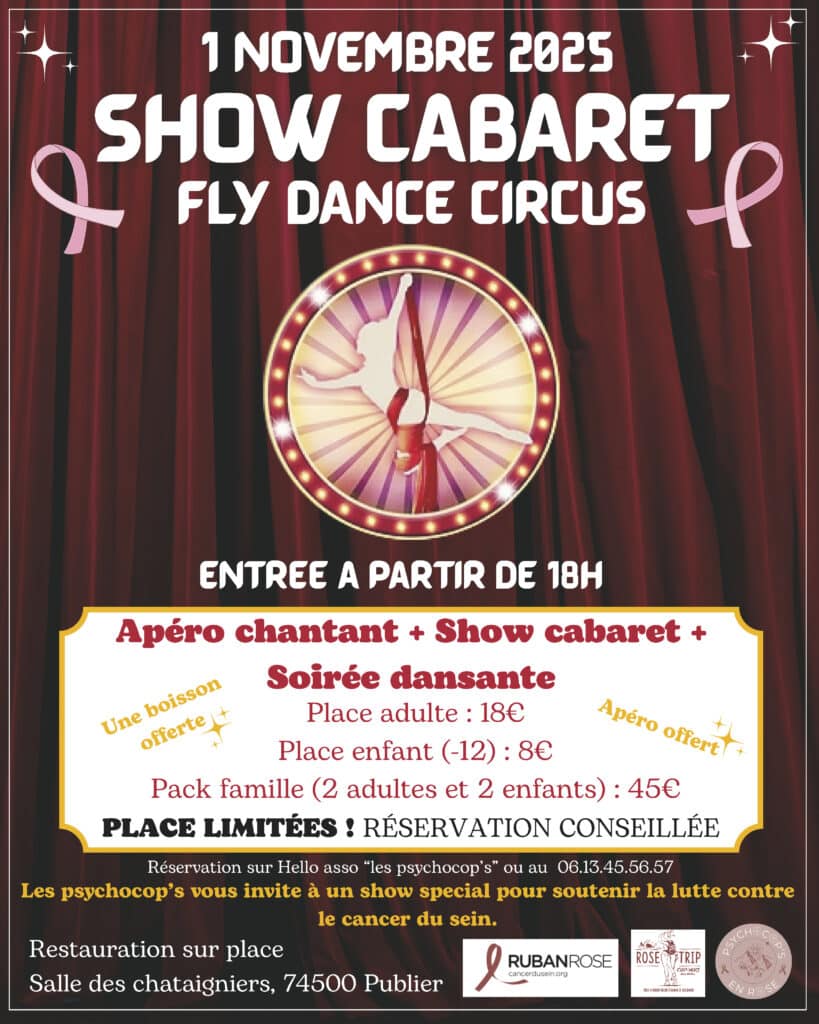 L’association les Psychocop’s propose à une soirée cabaret au profit du trek du rose trip le samedi 1er novembre à partir de 18h à la salle des Châtaigniers (54 rue des Châtaigniers 74500 Publier).